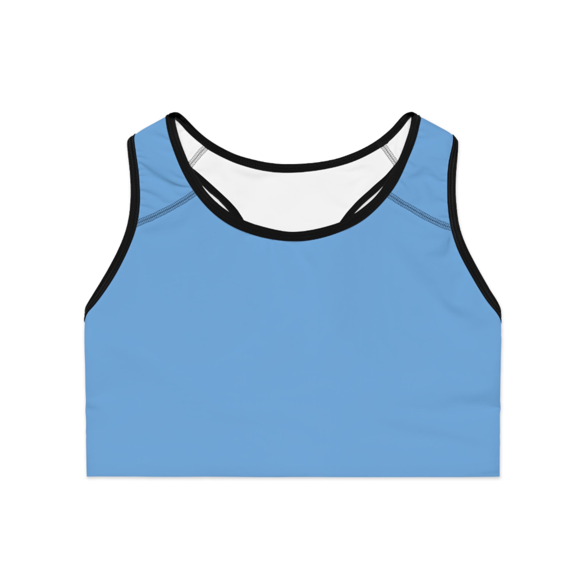 Blue Moisture-Wicking Sports Bra with White or Black Stitching