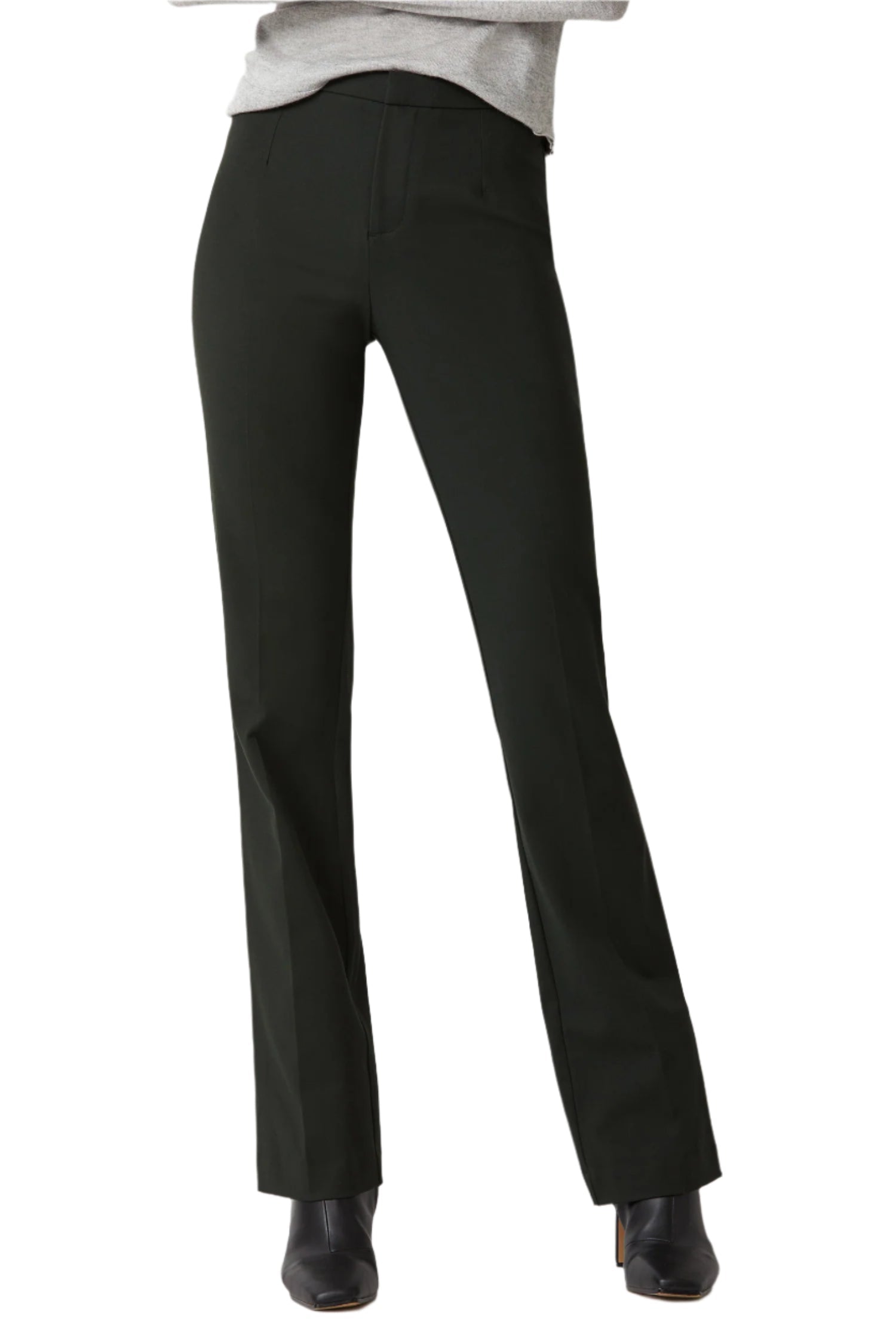 These Mid Rise Stretch Crepe Pants bring a playful twist to your classic wardrobe staple. Designed with a zip and button closure for easy wear, their solid color and stretchy fabric make them perfect for daylong comfort and style. Whether you're dressing up or down, these pants add a fun, flattering fit to your outfit with a smooth, modern finish.