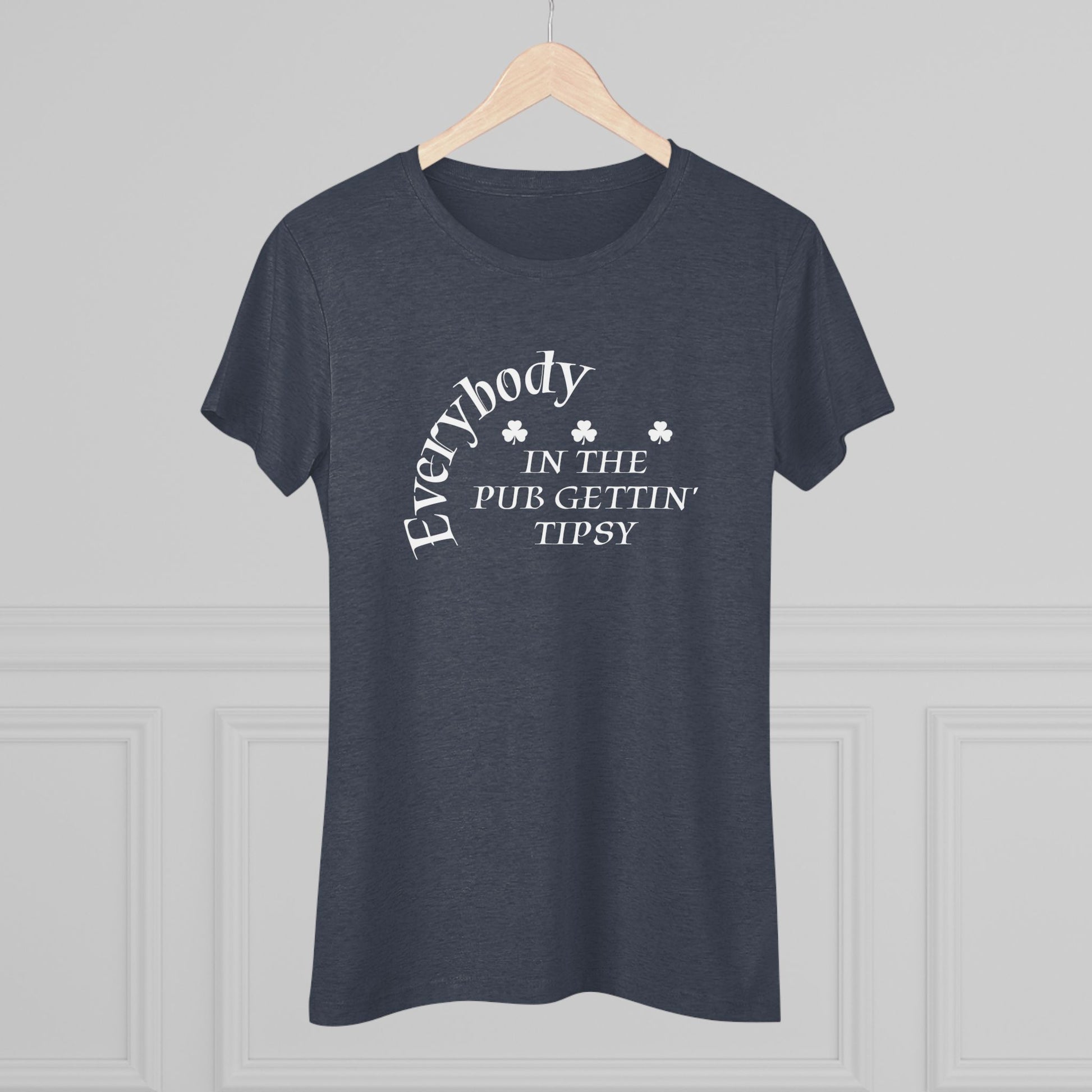 Let your sense of humor shine while experiencing ultimate comfort and style with this Women's Triblend Tee. Designed for the modern woman, this tee offers a soft, breathable fit that's perfect for casual outings or lounging at home. The lightweight fabric drapes beautifully without compromising durability, and the slim fit makes it an ideal choice for layering or wearing on its own. Perfect for everyday wear, it's a great addition to your wardrobe for holidays, casual celebrations, or just because you like to wear your personality blazoned across your chest. This tee resonates with fashion-forward individuals who look for comfort and appreciate individual style. Also, enjoy the cheeky, tiny graphic on the back of the shirt that is a nod to the humorous graphic on the front.
