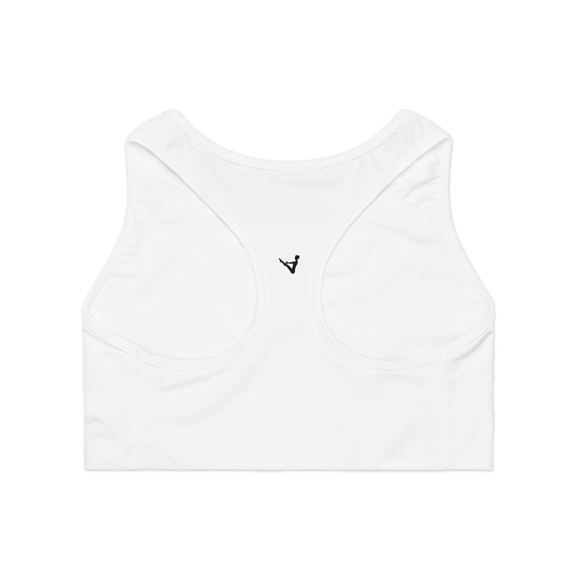 White Moisture-Wicking Sports Bra with White or Black Stitching