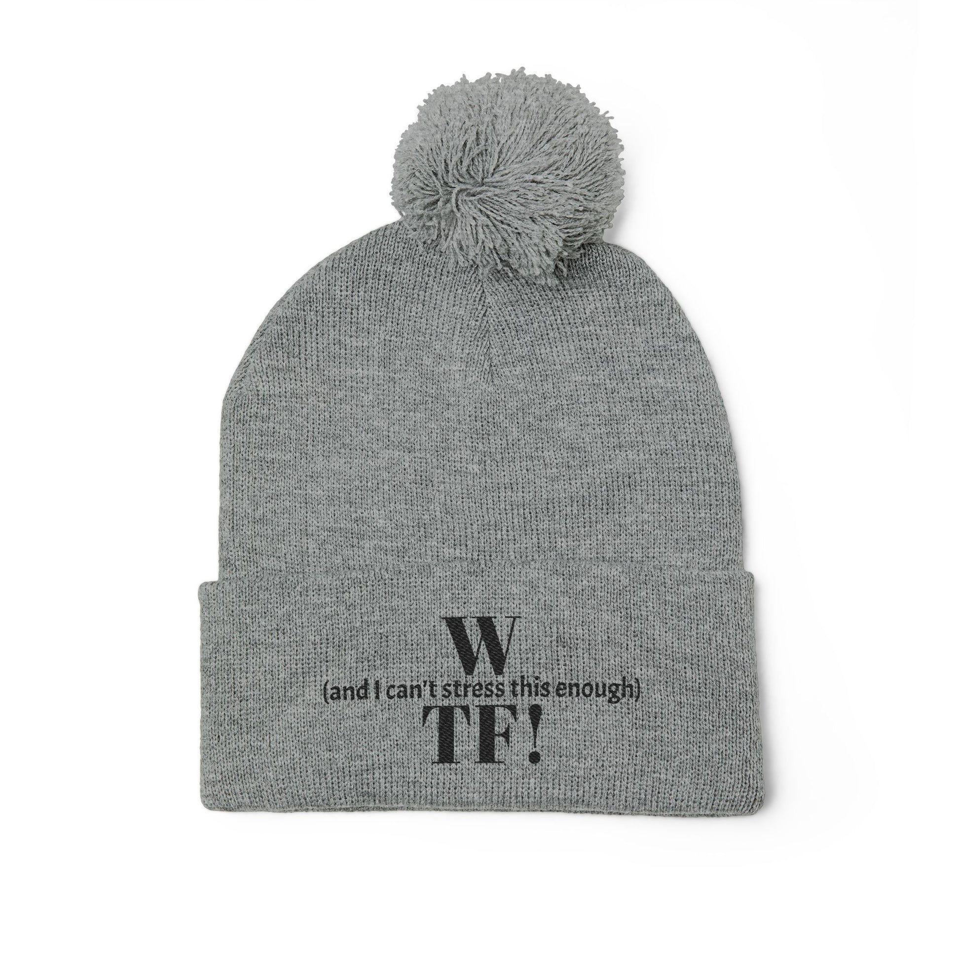 WTF Pom-Pom Knit Cap (Embroidery) - black font in multiple colors